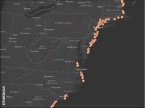 ENIGMA map of underwater UFO reports on U.S. East Coast