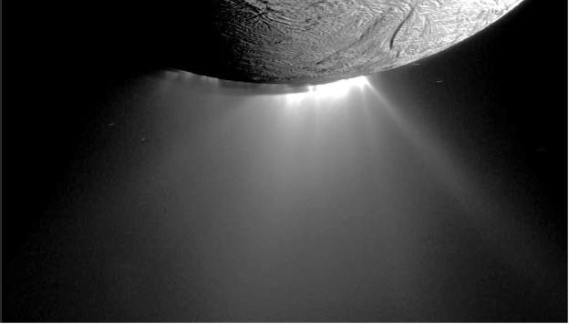 The possibility of life around Saturn seems more likely after NASA’s Cassini probe flew past Enceladus in 2015 and captured this photo of an object blasting away from that moon.
