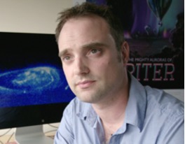 The principal investigator of Jupiter’s auroras, Dr. Jonathan Nichols (R) with the University of Leicester in the UK, is more colorful in his description of the phenomena: