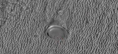 A dedicated Mars researcher, Jean Ward, found this object in a Mars Reconnaissance Orbiter photo taken on January 24, 2012 (NASA photo ESP_025752_1395). He estimates the sphere is about three meters or 9.84 feet in diameter.