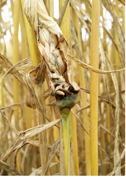 ● The first node beneath the seed head of each stalk was expanded or elongated (sample shown on right).