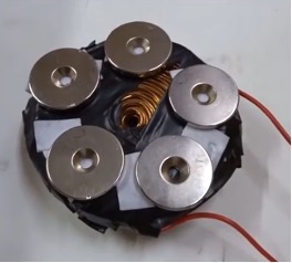 He believed the circle showed a tight ring of six wire-coiled electromagnets. When he built a model (R) based on the circle blueprint, he found it created electromagnetic energy that could both attract and repel a metal ring. This is the type of energy many people believe extraterrestrials use to propel their spacecraft.