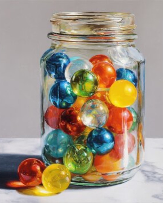 A slight variation in the intensity of the blue and the white highlight indicate the object is ball-shaped. The hazy blue beyond the orb suggests that it is radiating light.