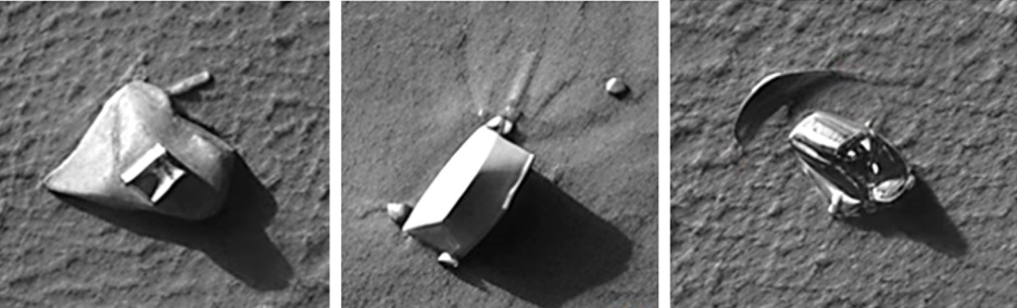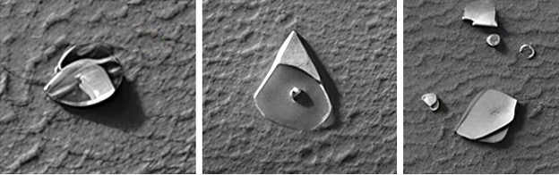 Dozens and dozens of large metal-looking shards were discovered in a satellite photo of the Terra Sirenum area of Mars. Jean Ward, a devoted searcher of Mars anomalies, recently found them in a Mars Reconnaissance Orbiter photo taken on November 17, 2007.