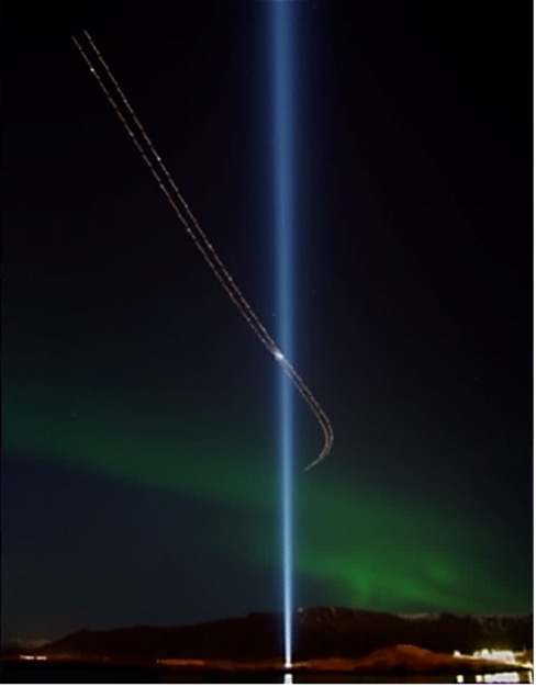 Imagine Peace Tower was dedicated on October 9, 2007, which would have been Lennon’s 67th birthday. Extraterrestrials took notice and a livestream EarthCam caught a UFO spiraling around the tower.
