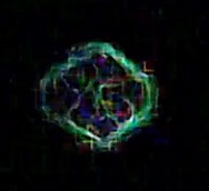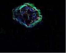 Here’s another image of David’s orb when it made an unannounced appearance just as his photo was being taken in front of his home. The enlargement of the orb on the right reveals its thought-provoking colors, shapes and textures.