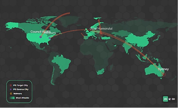 FortiGuard Labs posts real-time, constantly-changing 2D and 3D maps of global threats. It also provides (1) a running scroll of real-time attacks, (2) a constantly changing list of countries with the highest volume of cyber attacks and (3) an ever-changing list of the top targeted industries.