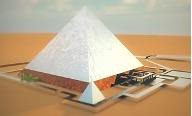If the fourth pyramid were still standing today, it would be the grandest of those in Giza. First, it was built high above the other three Giza pyramids and would have been seen for miles. Second, it was designed to be the most eye-catching of them all. Pharaoh Djedefre, a son of Khufu, had the lower part built with shiny red granite and the top in polished white limestone. Archaeologists believed it looked like the model on the right. |