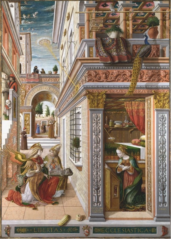 Well, that’s not a new idea. Take a look at this 1486 A.D. painting by Carlo Crivelli. It is titled “The Annunciation, with Saint Emidius.”