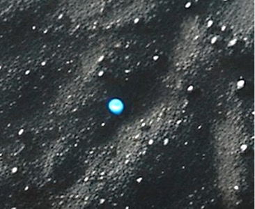 I’ve looked at Mars photos for years; this is the first time I’ve seen a brightly illuminated object of any kind. This one is especially eye-catching because of its vivid baby-blue color.