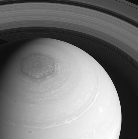 Beyond its unique rings, Saturn’s north pole is equally intriguing to scientists. It is shaped like a hexagon – a constantly rotating hexagonal vortex.